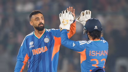 Skipper Gerald Erasmus tried to infuse some life into the match with two sixes against Axar Patel in the ninth over, but the next over saw Varun push Namibia back two steps further, literally, with dismissals of Eaton (13) and JJ Smit (0). Namibia were 86/4 in 9.4 overs.