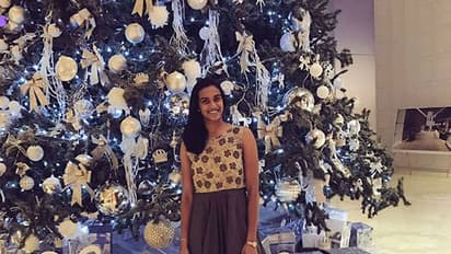 PV Sindhu wished her fans posing in front of this giant Christmas tree.
