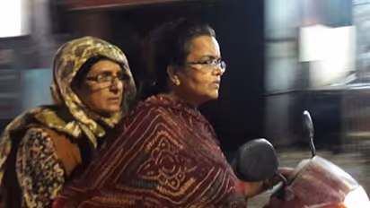 The image shows Bedi riding pillion on a two-wheeler with shawl covering her face. Bedi later also put out a message on the WhatsApp to journalists stating that she felt that the city was safe for women at night.