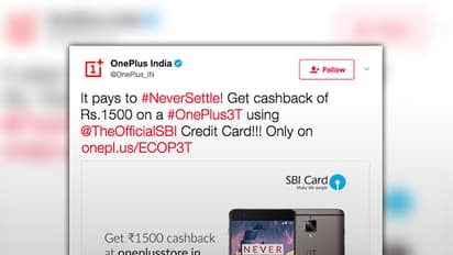 OnePlus' latest announcement reveals that anyone who purchases the OnePlus 3T from the company's official store will get Rs 1500 cash back on SBI credit cards. Priced at Rs 29,999, the OnePlus 3T is available in Gunmetal and Soft Gold colours.