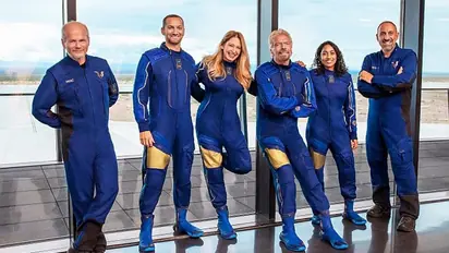 Accompanying Branson are five astronauts, including Indian-American Sirisha Bandla, vice president of government affairs and research operations at Virgin Galactic.