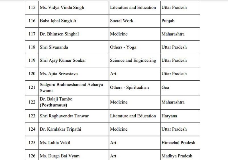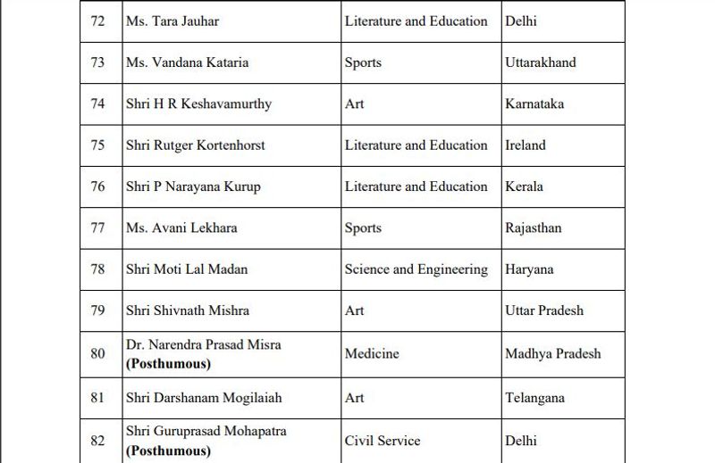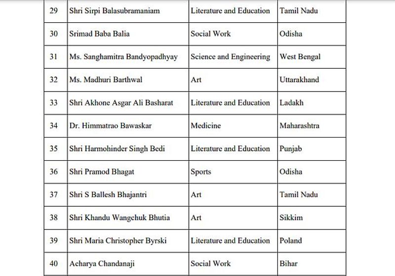 Ahead of 73rd Republic Day, the Indian government released the list of Padma Awards -- one of the highest civilian awards of the country, in three categories ---- Padma Vibhushan, Padma Bhushan and Padma Shri.