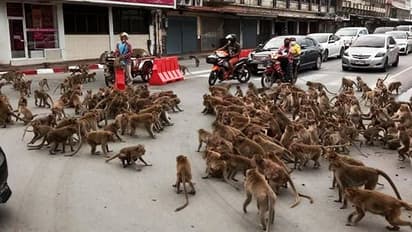 In an unusual incident, several monkeys came face to face in Thailand. The video emerged on social media and is going crazy viral. This episode occurred in Lopburi, around 150km from Bangkok. The two rival groups of monkeys clashed with each other over food. A report suggested that the monkey's presence on the road made the traffic halt as the travellers waited to get the street clear for their movement.