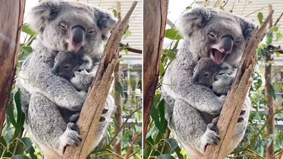 A video of a sleepy mother koala cuddling her baby from New South Wales’ Wildlife Sydney Zoo goes viral.