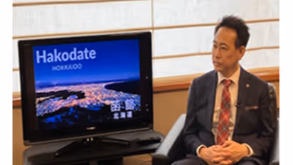 "At the end of Edo era, Hakodate was opened to foreign countries as a leading trading port. Hakodate has fused culture attracting sightseers, especially night viewing has the fame of world top 3 night sceneries. But Hakodate was suffered big fire accident in 1879 and 1934, more than 2,000 citizens were sacrificed. But this tragedy provoked motivation to overcome disaster. To keep safety and prevent fire expansion, 55 meters vast road and green belt were constructed. Current climate brought serious change to fishing industry. Catching quantity of special marine products decreased. To overcome fishery crisis, cultivation of marine products is investigated. They are becoming Hakodate new specialty. Regarding tourism we prepared direct flight from oversee airport, and invited foreign cruise ships. These plans are proceeding successfully." Oizumi city mayor's confidence is certified by experts of each field.
