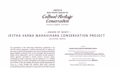 UNESCO Kathmandu also shared the details in a post on X. A proud moment for Nepal’s heritage! Two incredible sites have been honored at the 2025 UNESCO Asia-Pacific Awards for Cultural Heritage Conservation: ✨ Jestha Varna Mahavihara (Lalitpur) ✨ Lowo Nyiphug Namrol Norbuling Monastery (Mustang) https://t.co/NCboUxvNXy — UNESCO Kathmandu (@UNESCOKathmandu) February 23, 2026