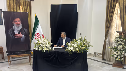 Iranian Deputy Foreign Minister Saeed Khatibzadeh visited the embassy in New Delhi on Thursday to sign a condolence book in memory of the late Supreme Leader Ayatollah Ali Khamenei. Khatibzadeh's tribute comes as Iranian state media reported that preparations are underway at Tehran's Grand Mosalla for the placement of the body of the late Ayatollah Seyyed Ali Khamenei, who was killed in a US-Israel-led strike on Iran.
