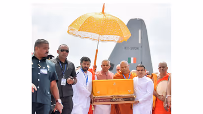 The holy relics arrived in Sri Lanka on Wednesday morning for the first-ever international exposition. A high-level Indian delegation, led by the Governor of Gujarat and Maharashtra Acharya Devvrat and Gujarat Deputy Chief Minister Harsh Sanghavi, personally carried the relics to the aircraft for departure from India. The delegation also included officials from the National Museum, representatives of MS University, Vadodara, where the relics are currently housed, and members of the International Buddhist Confederation.
