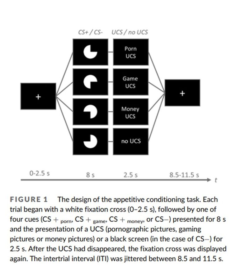 The researchers aimed to understand how the brain links neutral stimuli (geometric figures) with rewards (pornography, gaming, or money). This conditioning was carried out across 68 trials. The study involved the following key methods to assess participants' responses: