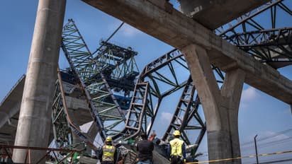 Car dashcam footage verified by AFP showed the moment the massive crane fell on Thursday, unleashing clouds of dust as well as rubble across the area as several vehicles pulled over or reversed to avoid falling debris.