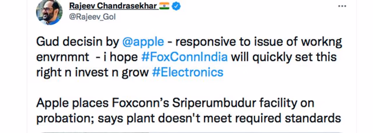 Reacting to the same, Rajeev Chandrasekhar, Union Minister of State for Entrepreneurship, Skill Development, Electronics and Technology, called the decision a 'good one' and hopes 'Foxconn India will quickly set it right'.