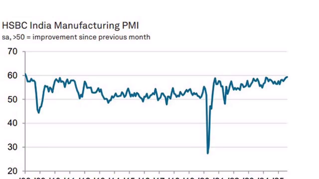 HSBC report stated "Up from 59.1 in July to 59.3 in August, the seasonally adjusted HSBC India Manufacturing Purchasing Managers' Index™ (PMI®) - a single-figure indicator of sector performance - indicated the fastest improvement in operating conditions for 17-and-a-half years".