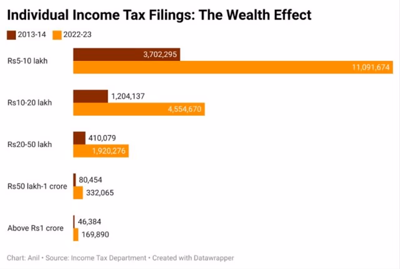 PM Modi noted that Anil Padmanabhan's study of ITR data further underscores the widening tax base in India. "Each bracket has seen a minimum threefold increase in tax filings, some even achieving a nearly fourfold surge," he added.