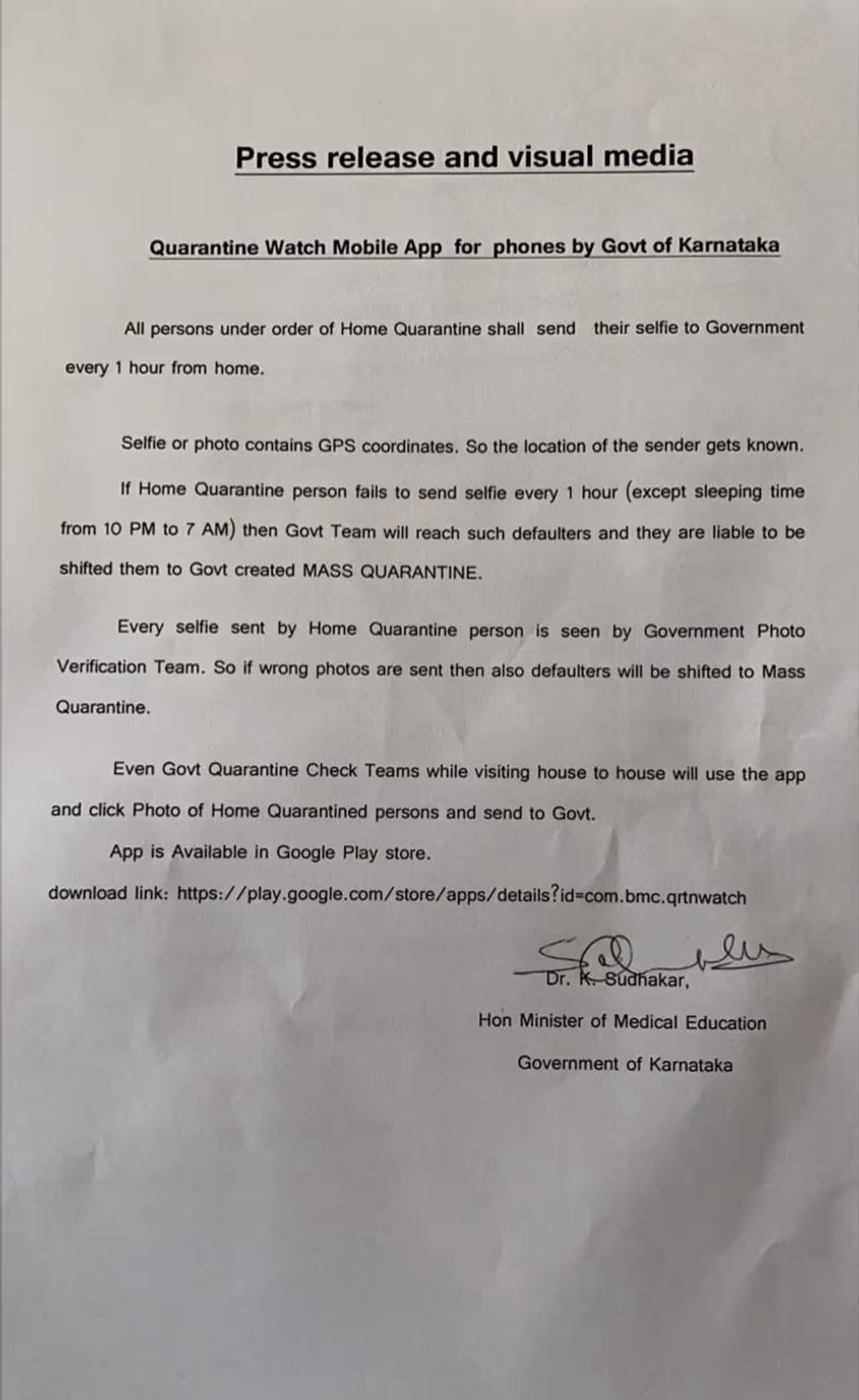 To implement strict measures and ensure the coronavirus spread is in check, the Karnataka government has introduced a shocking order. Every one hour, people in home quarantine should send their selfie or otherwise land in mass quarantine.