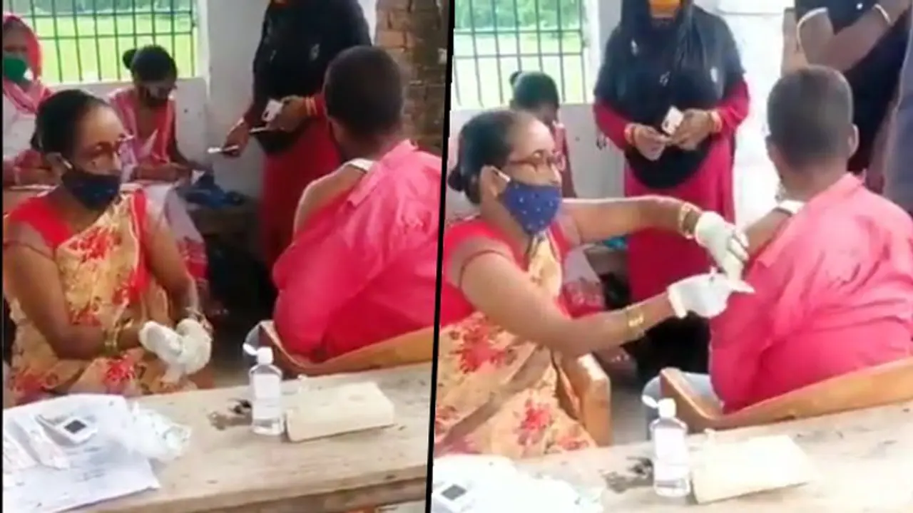 A man in Bihar was jabbed with an "empty" syringe at a Covid vaccination centre. The incident occurred in Chhapra city’s ward number 1 and has gone viral on social media.