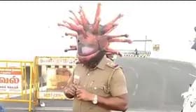 A video has gone viral on social media where a Chennai cop can be seen wearing a coronavirus helmet and spreading awareness about the deadly virus among curfew violators