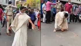 West Bengal CM Mamata Banerjee joined PM Modi in educating people on coronavirus fight. She arrived at a local market and borrowed a brick to draw circles for social distancing. This video has stormed the internet.