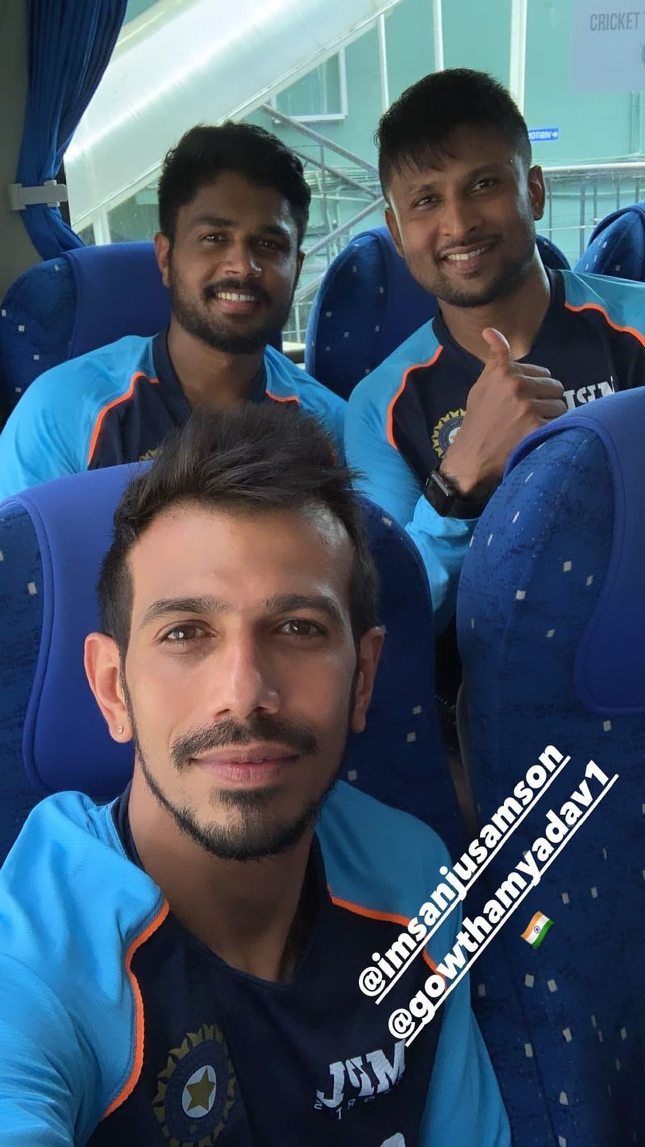 In another picture, shared on his Instagram story, Chahal clicks a selfie along with wicketkeeper-batsman Sanju Samson and Gautam Yadav.