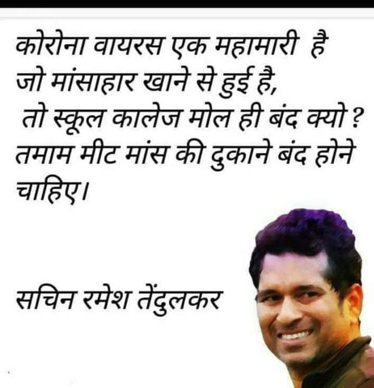 The post is in Hindi with the picture of Tendulkar. If translated, it read as this, “Coronavirus is an epidemic that has spread because of consumption of non-vegetarian food. Why then only school, colleges and malls are shut? All shops selling meat should be closed.”