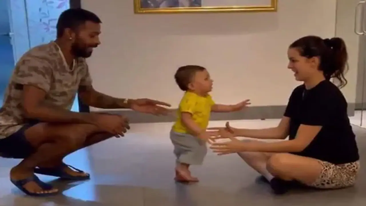 Indian all-rounder Hardik Pandya has Team India duties to handle in Sri Lanka. Meanwhile, in his personal life, his newborn son Agastya is enjoying some time out, as he is seemingly savouring some walking lessons in Serbia.