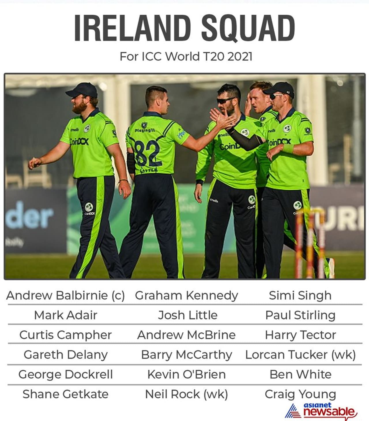Squad: Andrew Balbirnie (c), Mark Adair, Curtis Campher, Gareth Delany, George Dockrell, Shane Getkate, Graham Kennedy, Josh Little, Andrew McBrine, Barry McCarthy, Kevin O'Brien, Neil Rock (wk), Simi Singh, Paul Stirling, Harry Tector, Lorcan Tucker (wk), Ben White and Craig Young.