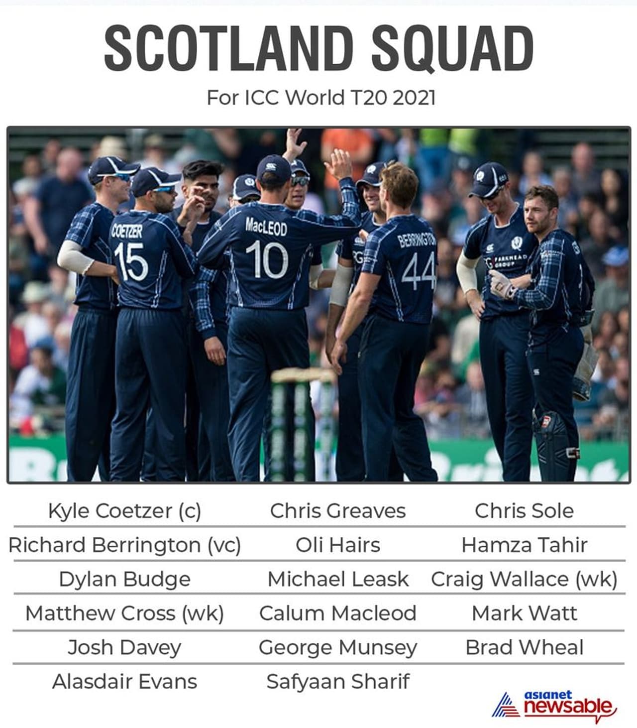 The Scottish side would be led by its regular skipper Kyle Coetzer. However, the appointment of former Englishman Jonathan Trott as the side's batting coach would be a mega boost, while it would look to come up with a prolific performance and qualify for the Super 12.