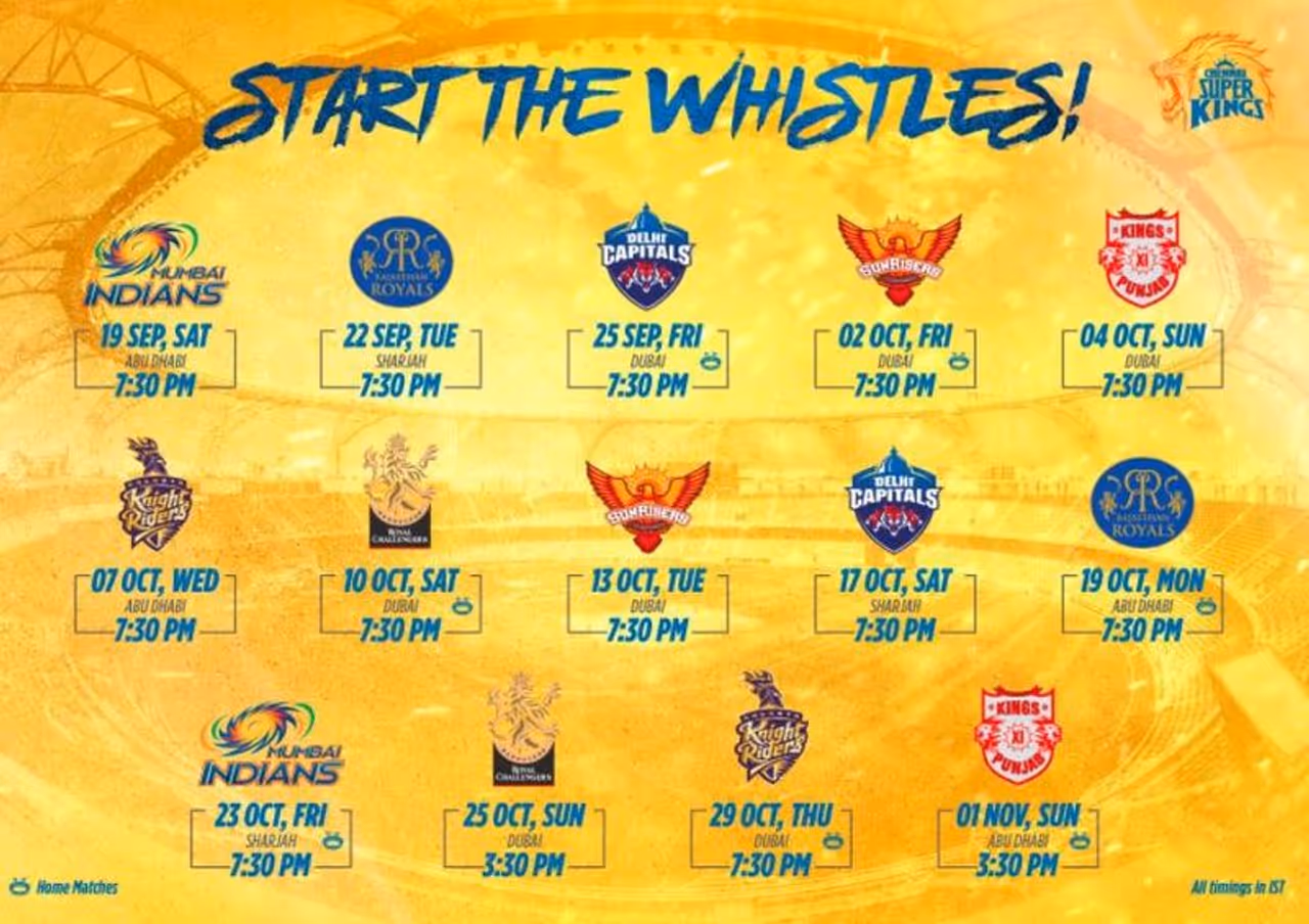 The cash-rich Twenty20 league will be played in the UAE from September 19 to November 10. In the opening game, holders Mumbai Indians (MI) will play against Chennai Super Kings (CSK) in Abu Dhabi.