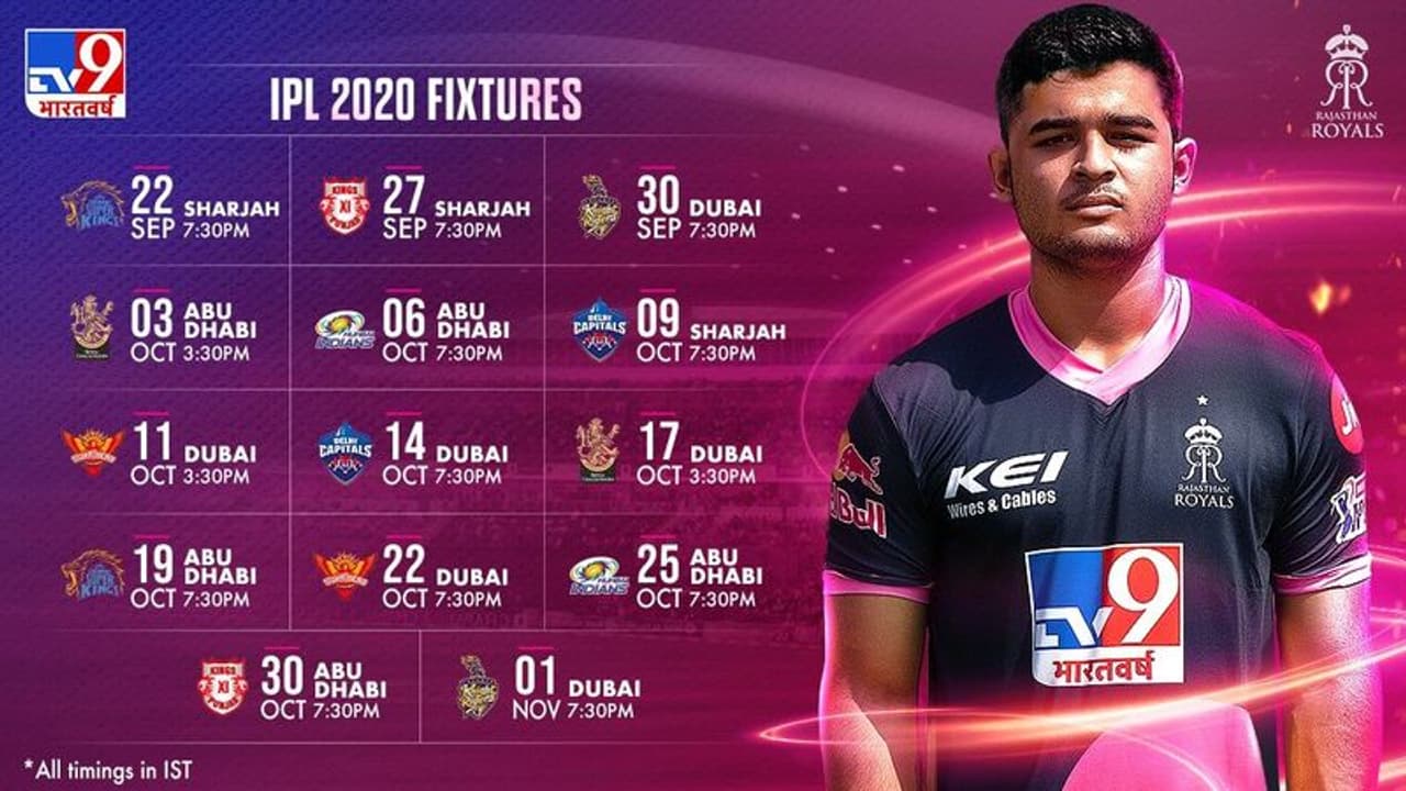 Here is Rajasthan Royals’ schedule for IPL 2020.