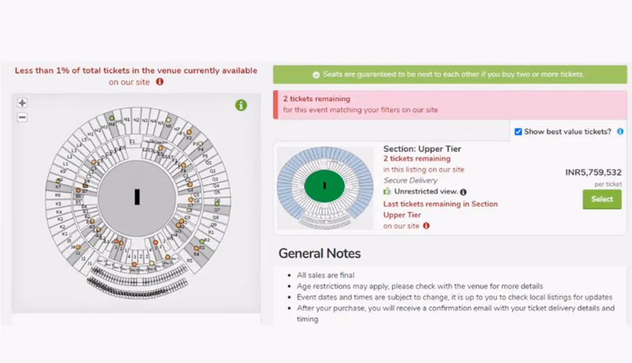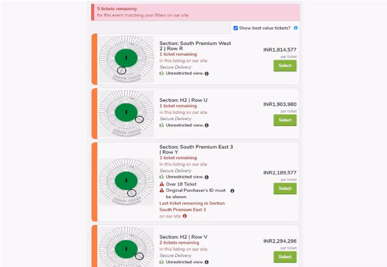 The initial ticket sales outlets for this marquee match witnessed a complete sellout within a mere one hour on two specific dates: August 29 and September 3. Some reselling platforms, however, had tickets available but at exorbitant prices. For instance, on Viagogo, an online sports ticket platform, a ticket in the South Premium East 3 section for the India vs. Pakistan clash was listed at a staggering Rs 21 lakh on a Tuesday. Additionally, two upper-tier tickets were being offered at Rs 57 lakh each on the same site.
