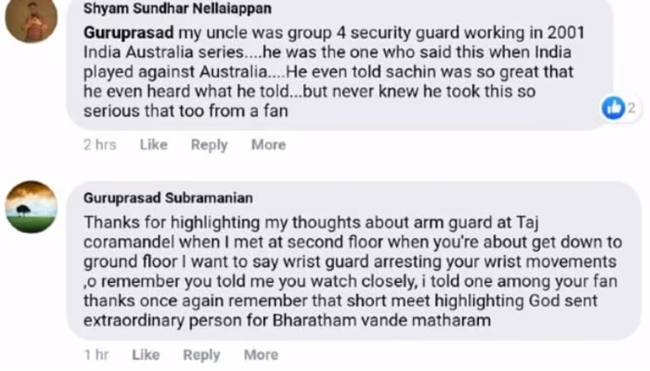 “I remember that day. Many people call it an ‘advice’ but sorry it is not an advice, it was only a suggestion. Sachin Tendulkar sir is a great man, I can only suggest, can’t advice him. I was working as a security guard at Taj Coromandel hotel in Chennai. I was in-charge of one of the hotel floors. When Sachin sir came out of his room, near the lift I met him,” Guruprasad told Newsable on Monday (December 16).