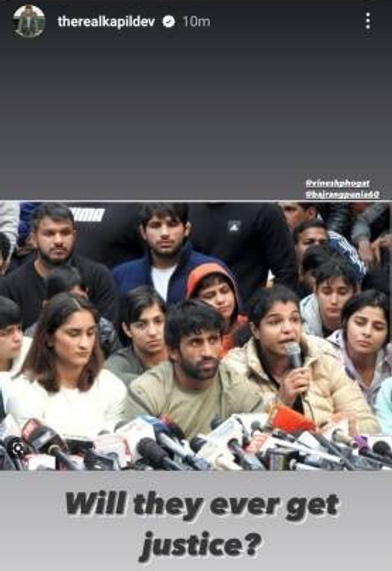In the meantime, legendary former Indian World Cup-winning skipper and all-rounder Kapil Dev took to Instagram to share an image of the protesting wrestler. He captioned, "Will they ever get justice?" Later, former Indian off-spinner Harbhajan Singh said in a tweet, "Sakshi, Vinesh are India's pride. I am pained as a sportsperson to find pride of our country coming out to protest on the streets. I pray that they get justice. #IStandWithWrestlers".