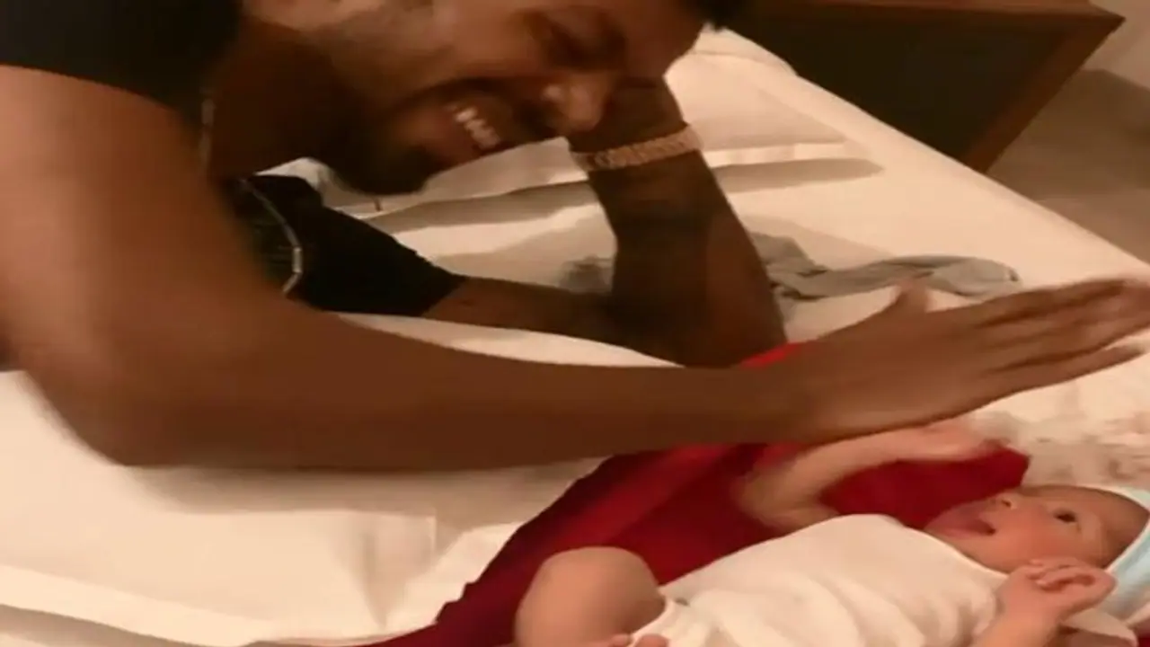 In the video, Pandya is seen giving high fives to Agastya, as the latter happens to look on. Pandya also giggles and tickles him, as both seemed to be having a playful time.