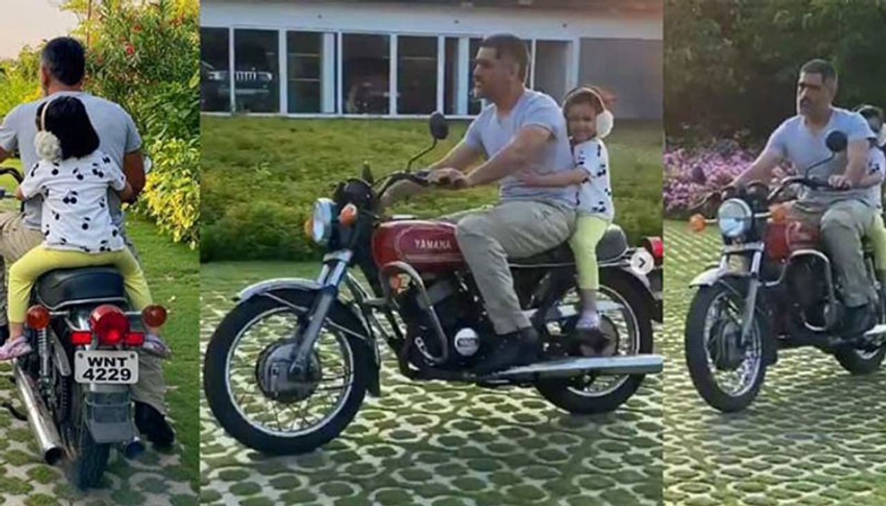 On Tuesday, Sakshi shared one more video where Dhoni is taking Ziva on his bike amid dark clouds overhead. There was also lightning.