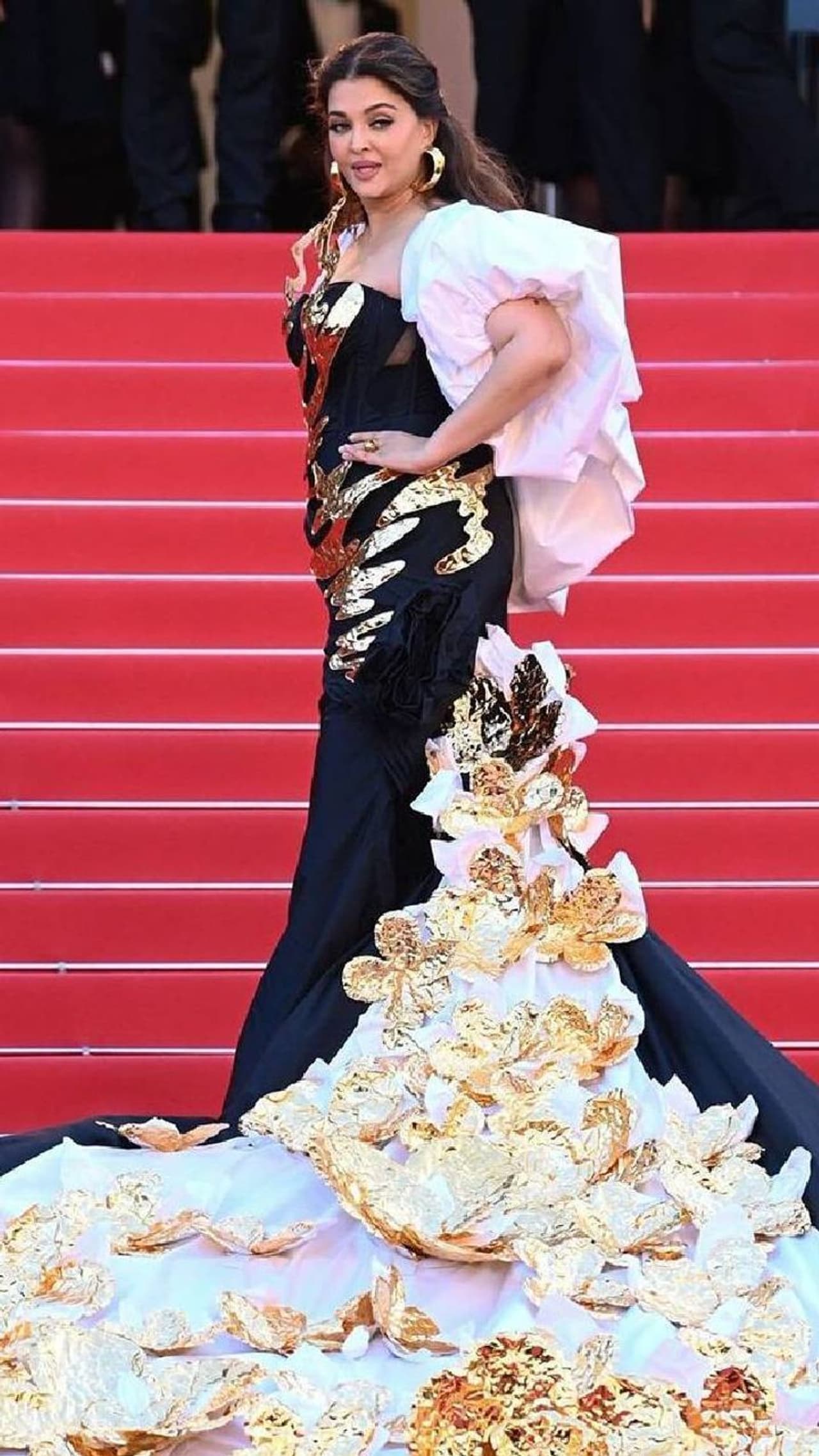 Aishwarya Rai made two red carpet appearances at the 2024 Cannes Film Festival. She wore an elaborate black and gold strapless gown on her first appearance. The actress drew the most applause when she entered the Cannes red carpet in the daring dress.