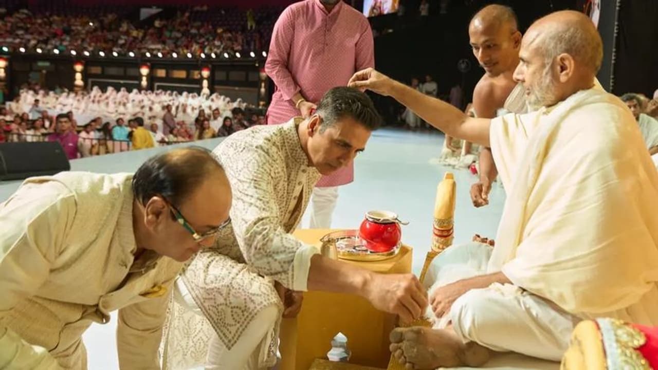 On March 31, actor Akshay Kumar had the honour of serving bhog (meal) to Shri Hansratna Surishwarji, a Jain monk who had completed his 180-day fast at NSCI in Mumbai. Akshay Kumar was dressed in a kurta pajama and gracefully attended the ceremony. Shri Hansratna Surishwarji is the only monk to complete this fast seven times, surviving exclusively on water. And it was a truly happy moment for Akshay, as he was allowed to assist him in breaking his fast. According to Jain scriptures, Lord Mahavir fasted for 180 days twice to preach peace and nonviolence, and Hansratna Swami will be one of only 12 people in Jain history to do the same.