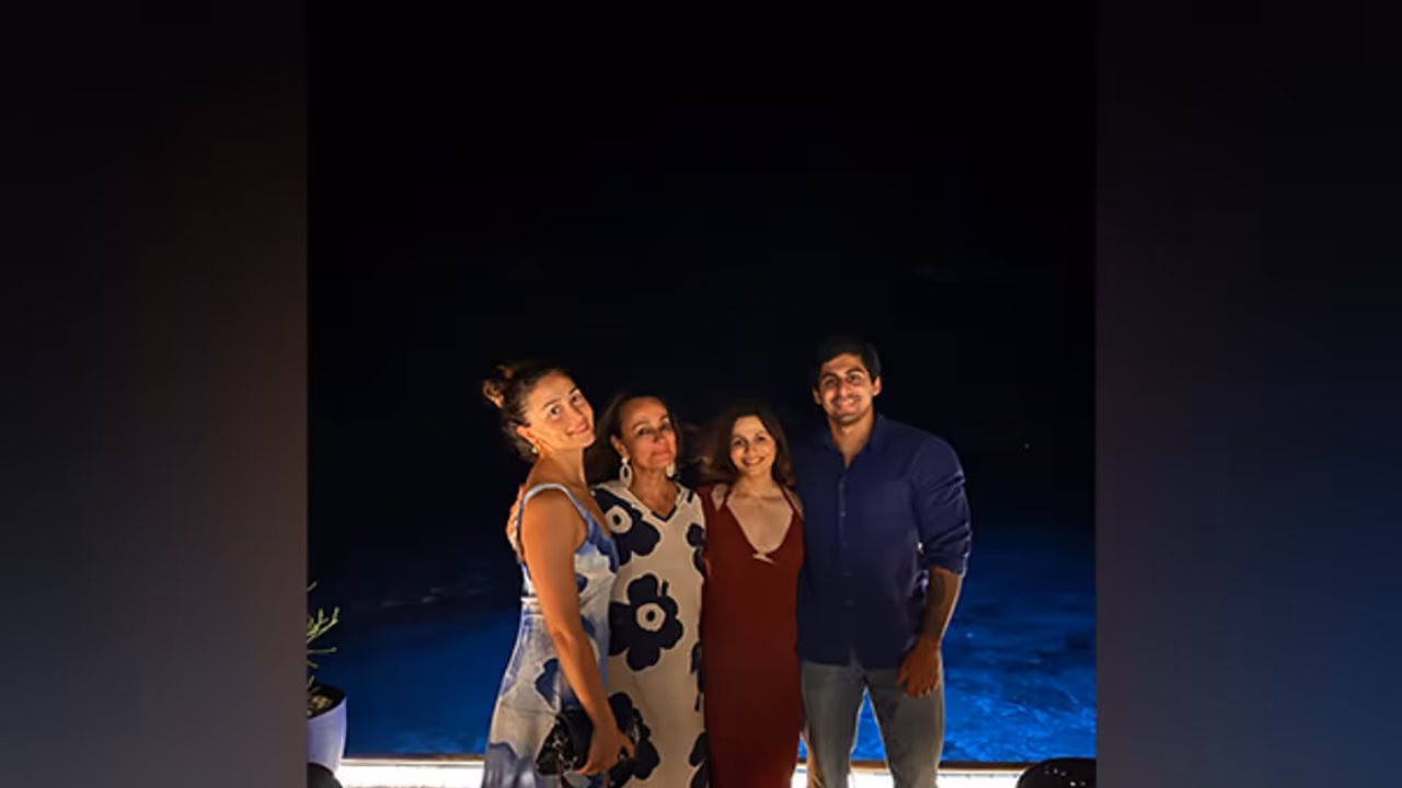 One of the pictures shows Alia, Soni, Shaheen, and Shaheen's friend, fitness coach Ishaan Mehra, smiling happily for the camera. Alia looked fresh and relaxed in a blue-and-white floral maxi dress, paired with a chic black handbag. Beside her, Soni kept it elegant in a cream outfit with bold floral prints. Other pictures included a happy selfie, a glimpse of their gym sessions, and shots of the clear waters and beaches.