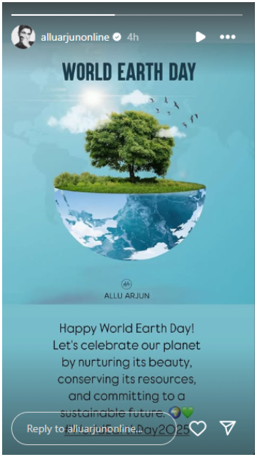 Allu Arjun, known for his massive stardom and box office success, celebrates World Earth Day with a heartfelt message, promoting sustainability and his love for nature through planting and conservation.