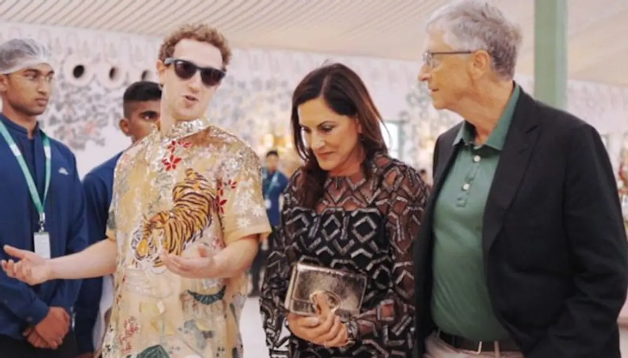 Two tech titans, Bill Gates and Mark Zuckerberg, who rose to prominence in Silicon Valley by creating their wildly profitable businesses, were spotted joking around with one another during Anant Ambani and Radhika Merchant's pre-wedding festivities in Jamnagar, Gujarat.