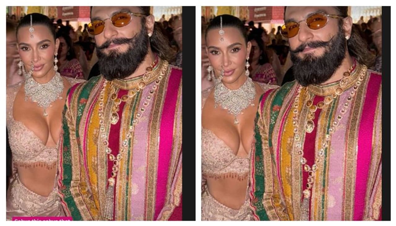 A photo featuring Bollywood star Ranveer Singh and reality TV icon Kim Kardashian has taken the internet by storm. The duo attended the lavish wedding of Anant Ambani and Radhika Merchant this weekend. While Kim has been sharing glimpses from the event on her Instagram, the popular Instagram page Diet Sabya posted a picture of Kim posing with Ranveer at the event. The two stars attended the Shubh Aashirwad ceremony on Saturday night.