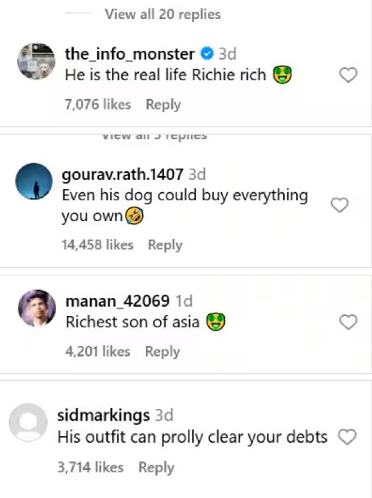As soon as the post mentioned above was shared on social media, netizens reminded her that Anant Ambani is the real-life Richie Rich and the son of India's richest man. Watch the amusing reactions below.