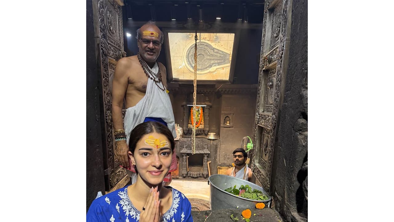 Actor Ananya Panday on Tuesday visited the Trimbakeshwar Jyotirlinga Temple, describing it as her "first Jyotirlinga" and sharing glimpses of the visit with her fans on Instagram. The actor wrote, "Har Har Mahadev... my first Jyotirlinga, the beginning of the best journey." https://www.instagram.com/p/DUSpTsMiGaX/?img_index=1