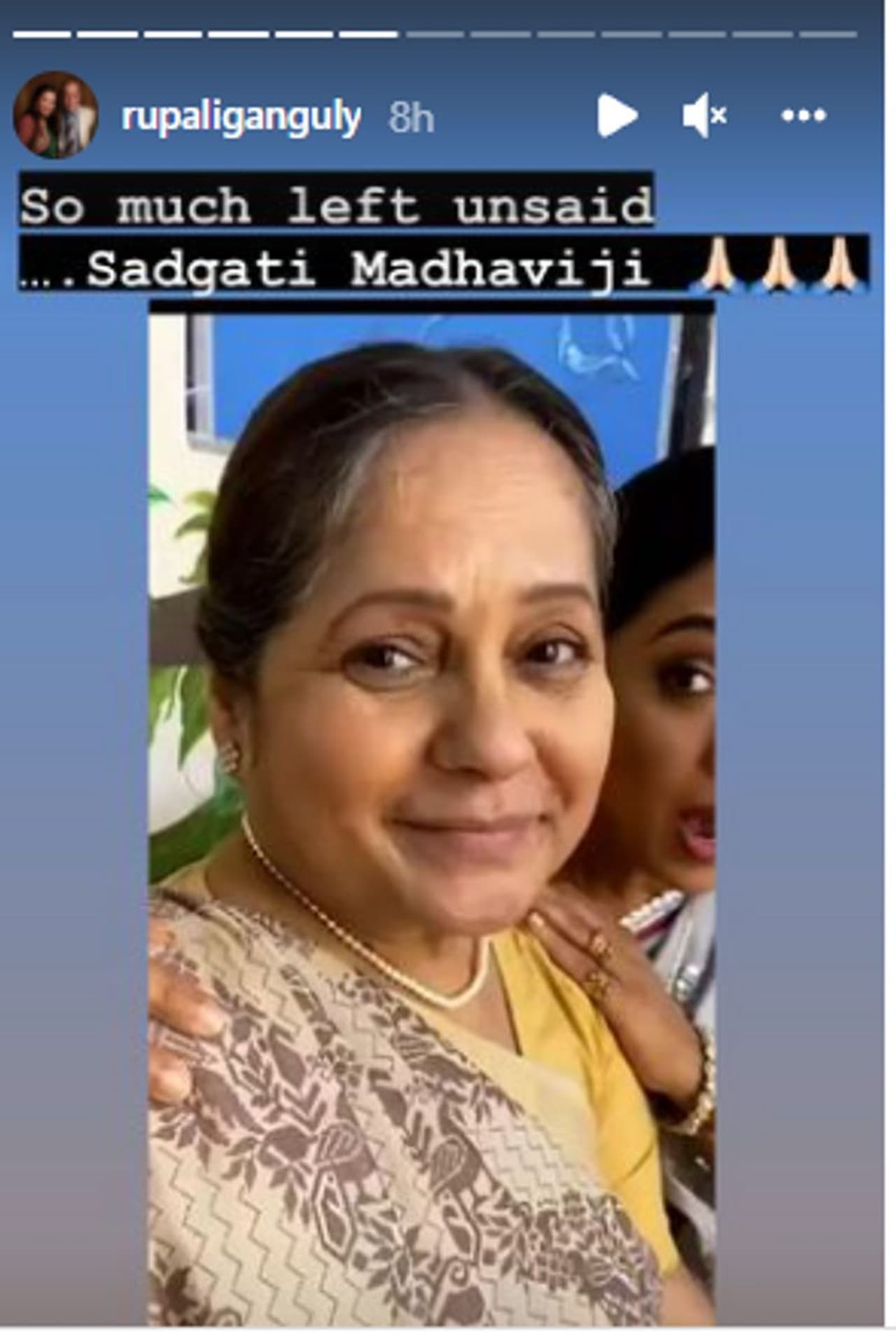 Her condition worsened, and she breathed her last on November 21. Her on-screen daughter Rupali Ganguly took to social media to write that a lot has been left unsaid. She also shared some of her clips with Madhavi from the sets of Anupamaa.