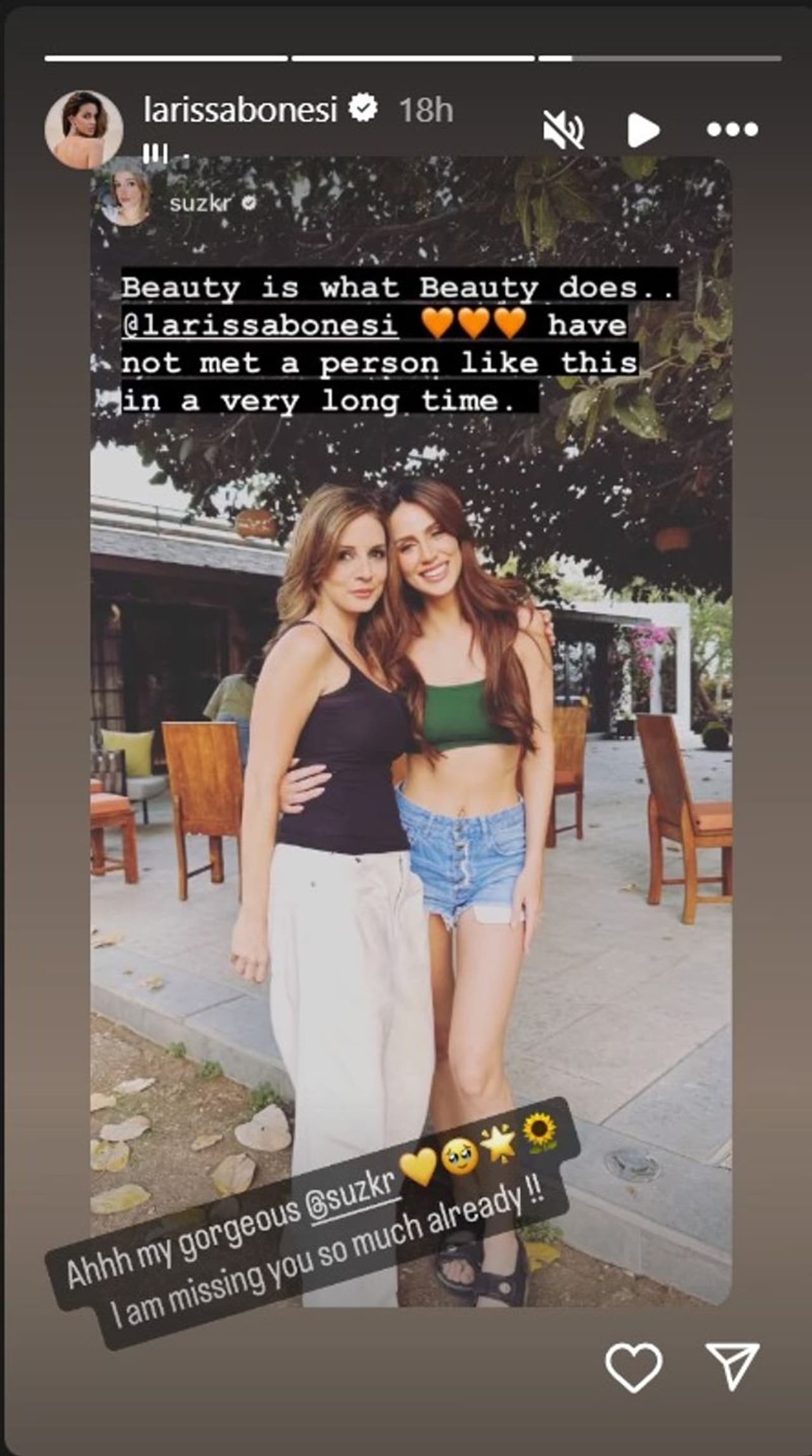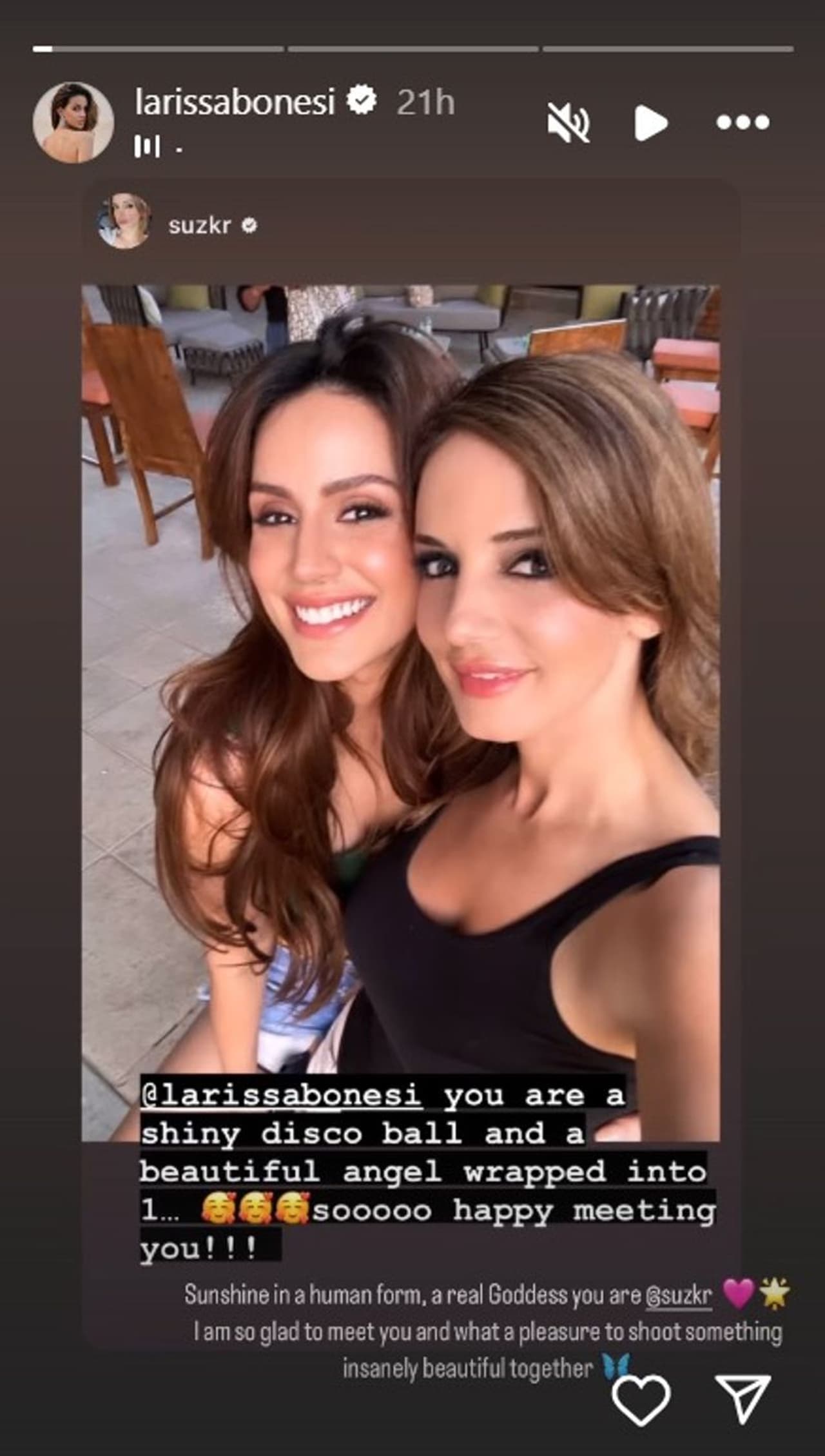 Larissa Bonesi and Sussanne Khan took to their Instagram stories to give a shoutout to each other and how much fun they had together.