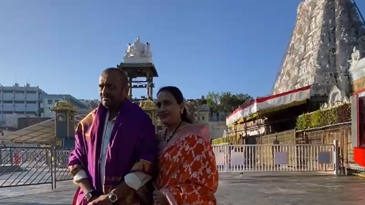 On his birthday, Telugu actor-producer Bandla Ganesh and his wife visited the Tirumala Venkateswara Temple. Dressed in traditional attire, they offered prayers. This visit follows his recent announcement of returning to film production after a decade.