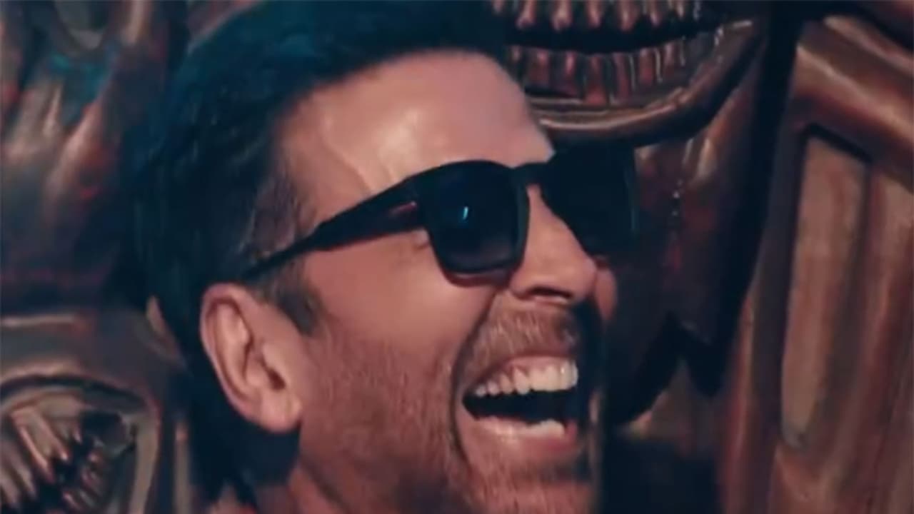 The motion poster presents Akshay in a dramatic 'tantrik-like' avatar, marking a distinct shift from his recent on-screen personas. Seated shirtless on an eerie, intricately carved throne adorned with demonic faces, he sports black sunglasses and multiple strands of Rudraksha beads. Holding a rosary, the actor appears mid-scream, his mouth wide open, creating an intense yet theatrical visual that hints at the film's horror-comedy tone.