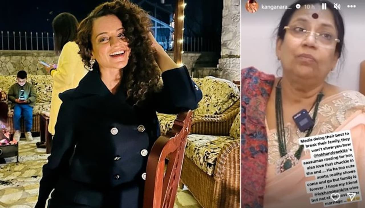 Kangana Ranaut took to her Instagram Stories to share a snippet featuring Vicky Jain's mother discussing Ankita and Bigg Boss 17. Kangana expressed her hope for Ankita's victory while emphasizing the importance of not compromising her marriage for the sake of winning the reality show. She highlighted the media's role in attempting to "break the family" and shed light on the support Ankita is receiving from Vicky's mother.