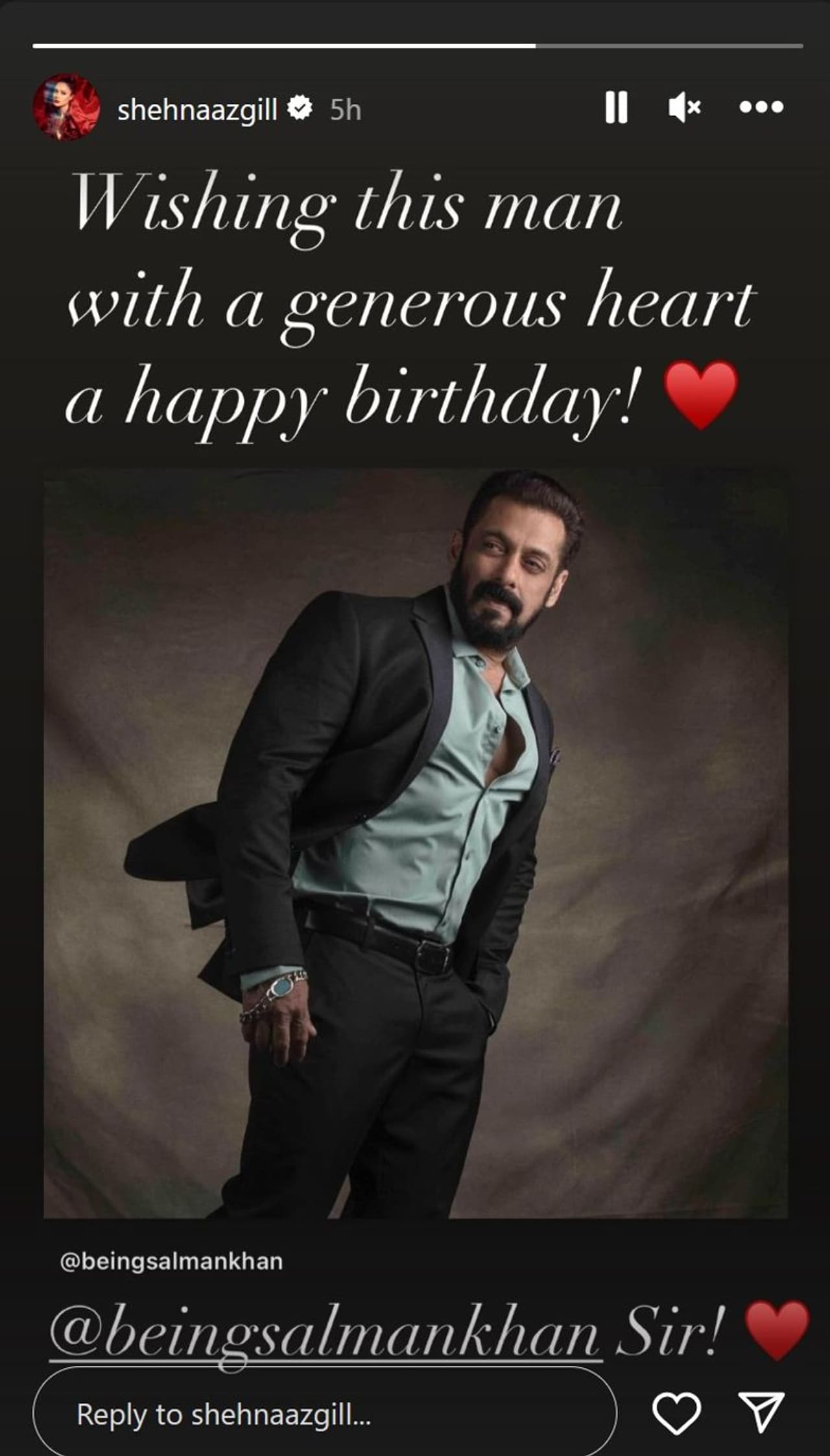 Shehnaaz shared a photo of Khan and wrote, "Wishing this man with a generous heart a happy birthday. "In terms of his professional endeavors, Salman Khan's most recent appearance was in Maneesh Sharma's "Tiger 3," alongside Emraan Hashmi and Katrina Kaif. Currently, discussions are underway for his collaboration with Karan Johar in a film titled "The Bull," and he is set to feature in "Tiger vs Pathaan" as well. Apart from his film commitments, Salman is presently hosting the reality show "Bigg Boss 17."