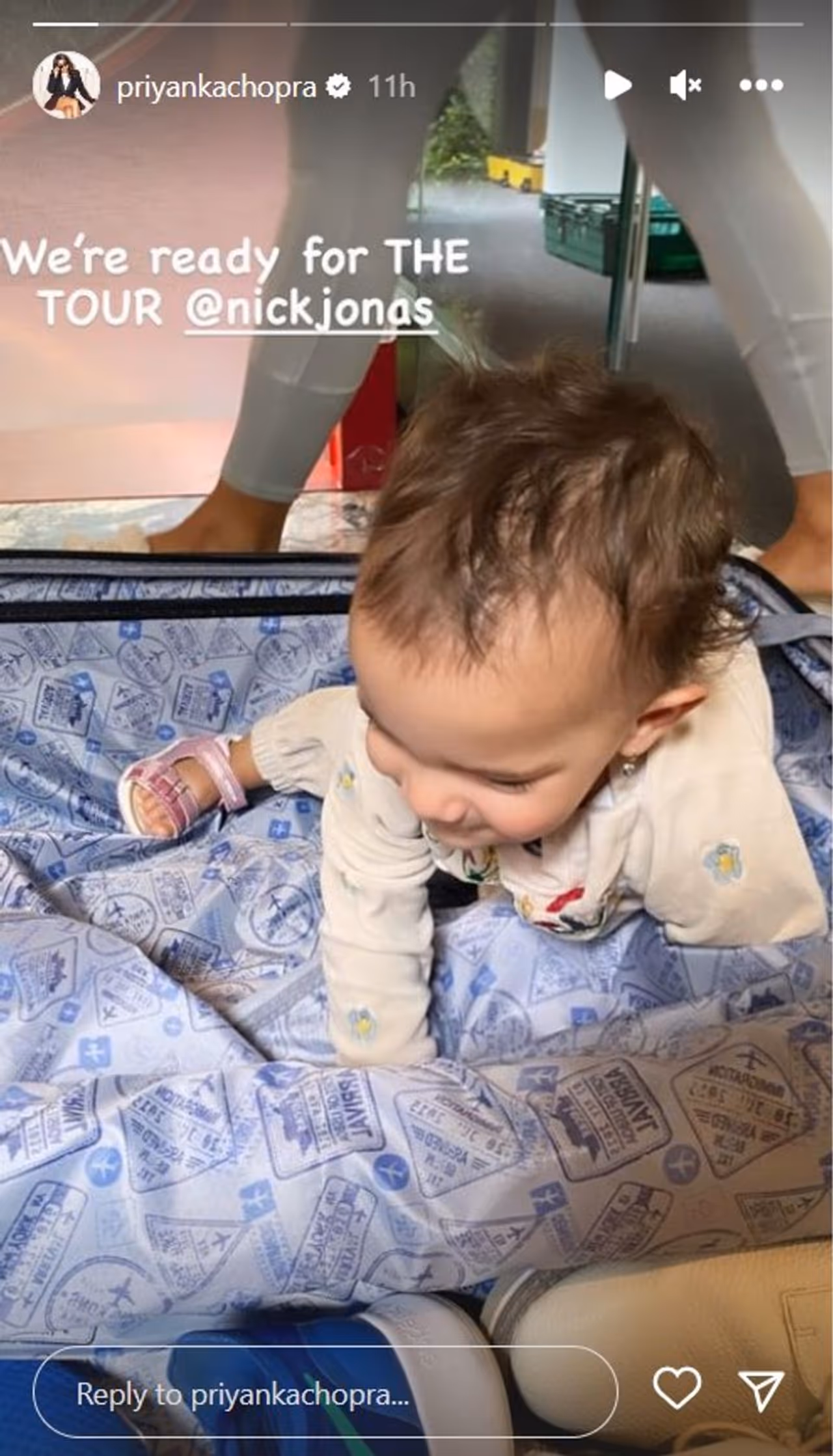Priyanka headed to Instagram and posted some gorgeous pictures of her child in her stories. Malti may be seen in the first photo sitting inside an empty suitcase, smiling and gazing about. She looked adorable in her white nightgown and purple shoes. Her mother was preparing for her husband Nick's next tour, which would begin in New York on August 12. The shot was captioned by Priyanka, "We're ready for THE TOUR @nickjonas."