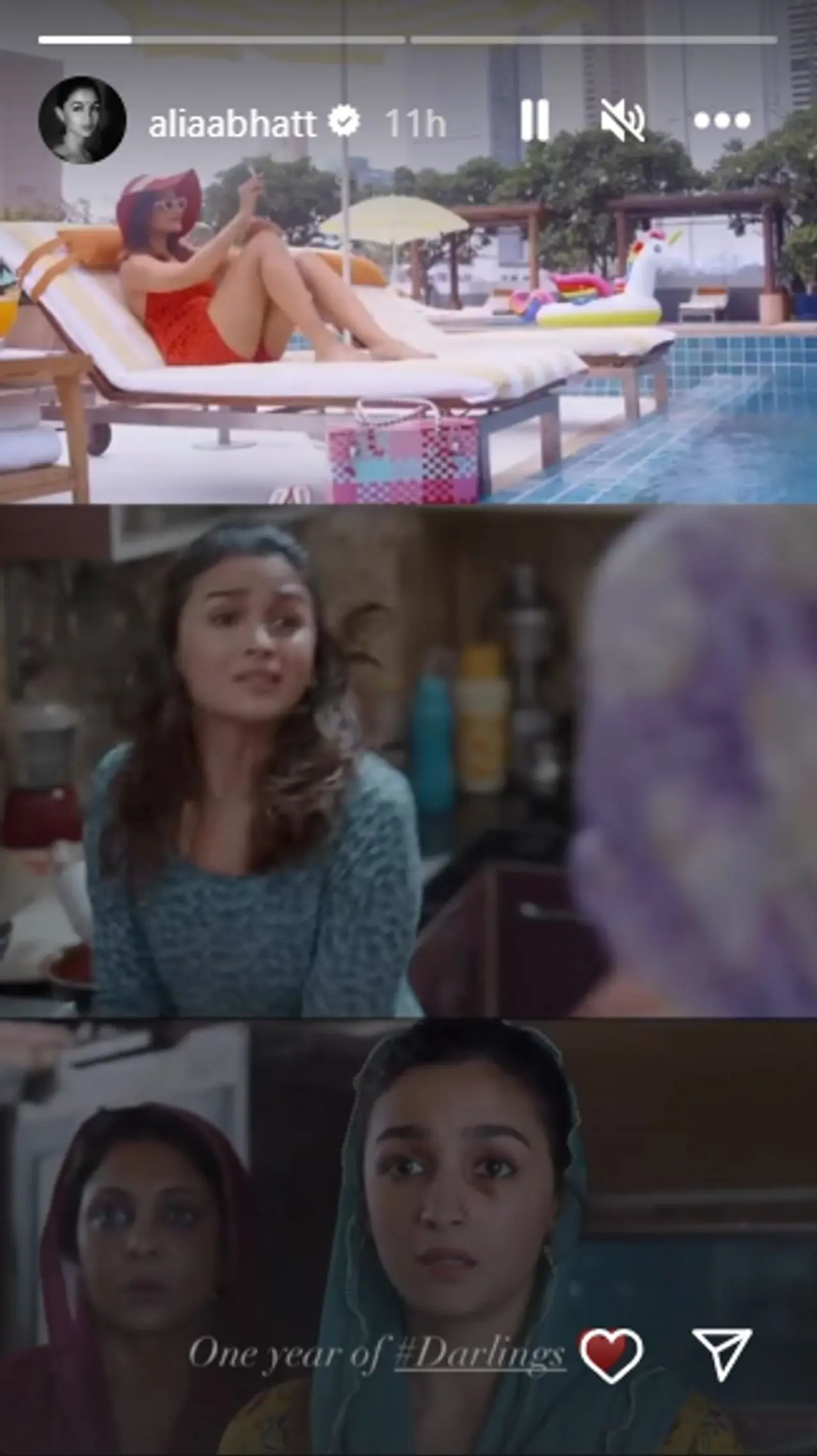 On August 5, Saturday, Alia Bhatt posted a collection of behind-the-scenes photos from the Darlings set on her Instagram story to commemorate the film's one-year anniversary.