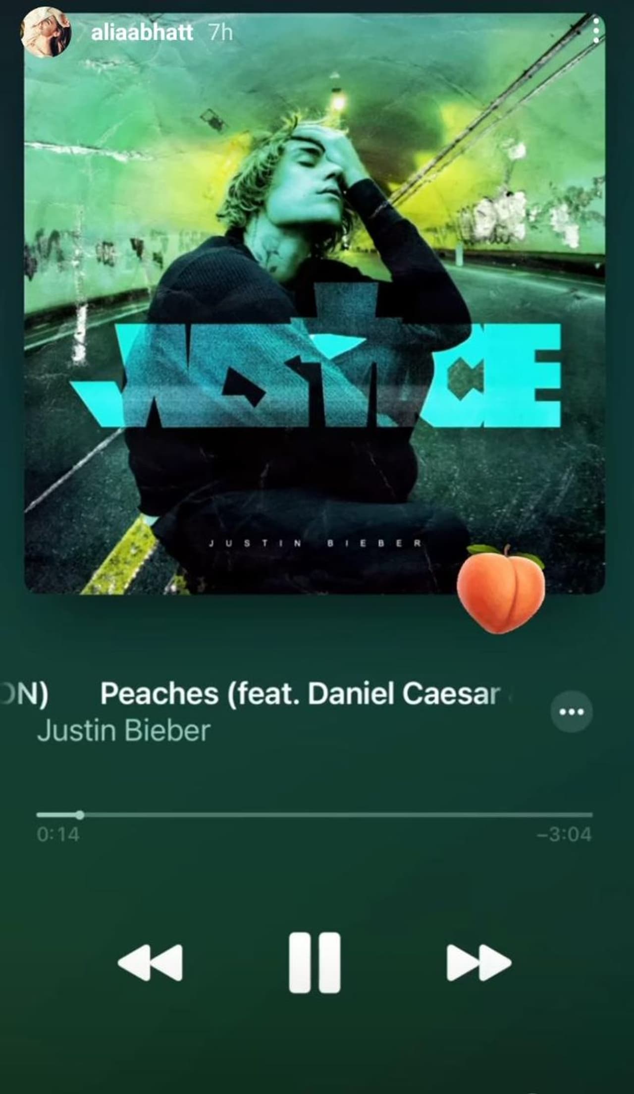Deepika Padukone shared a reel video yesterday, and there she disclosed her recent favourite song, and it's Justin Bieber's 'Peaches'. But wait, check out what Alia Bhatt is also listening to.